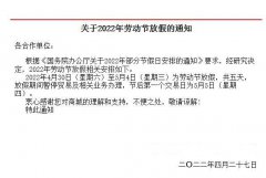 2022关于劳动节放假休市的公告