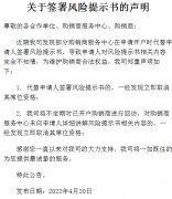 关于签署风险提示书的声明